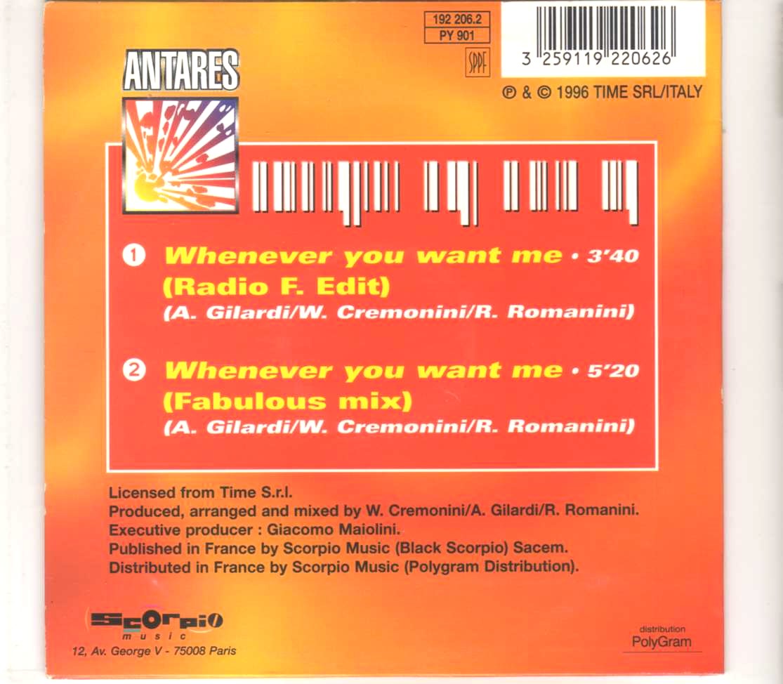 Antares – Whenever You Want Me – CD Single