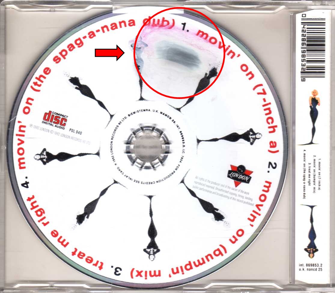 Disc: Correct (Part of the picture on the disc is a bit removed/erased, but plays perfect – see pictures / Une partie de la zone décorée du CD est effacée, mais lecture sans problème – voir photos)
