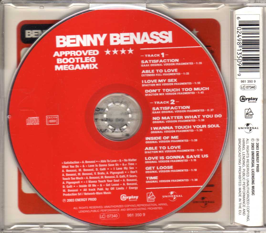 2. Approved Bootleg Megamix (Track 2) (includes fragmented versions of “Satisfaction”, “No Matter What You Do”, “I Wanna Touch Your Soul”, “Inside Of Me”, “Able To Love”, “Love Is Gonna Save Us”, “Get Loose” and “Time”)