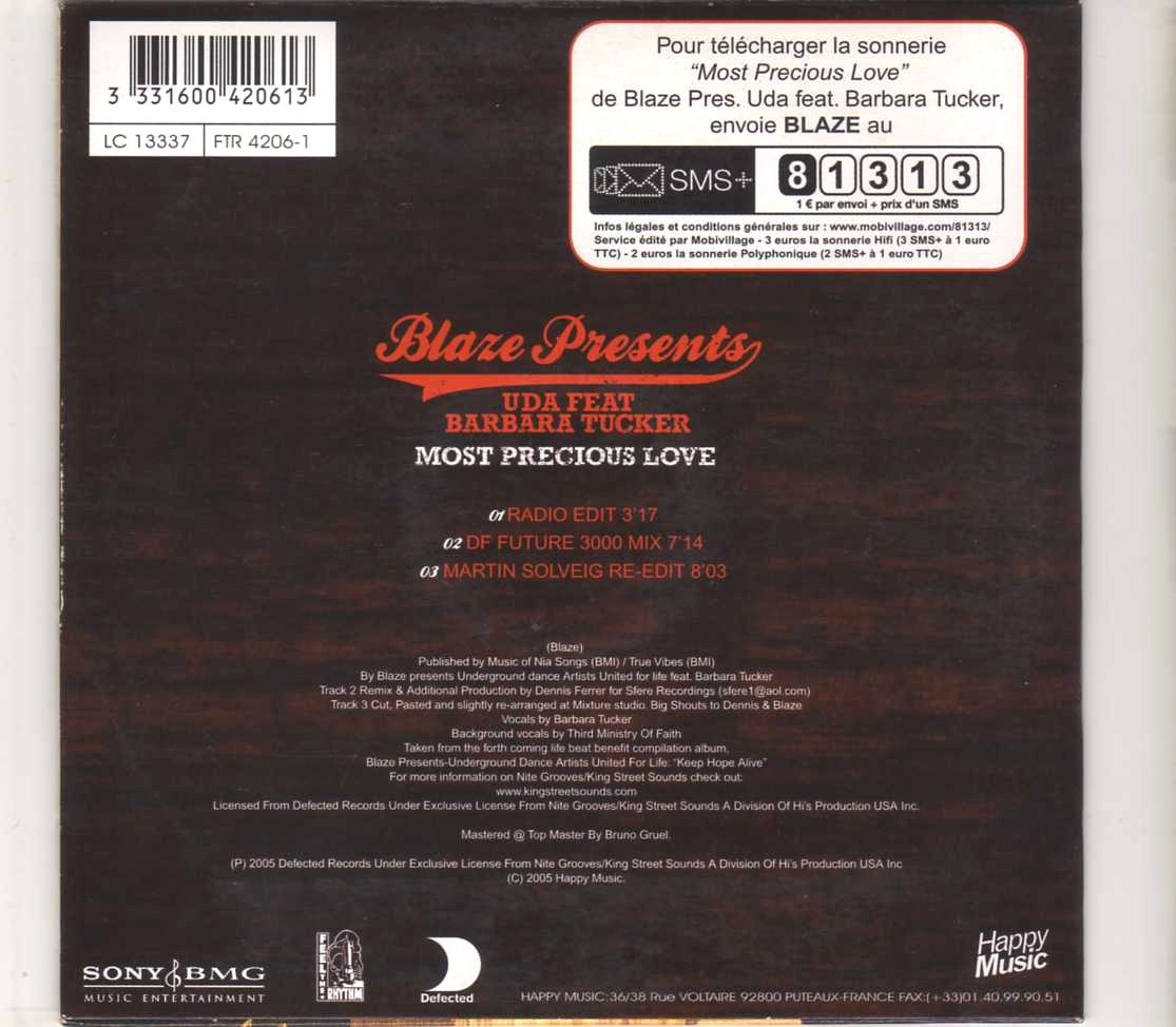 Blaze pres. UDA (Underground Dance Artists United For Life) – Most Precious Love – CDS