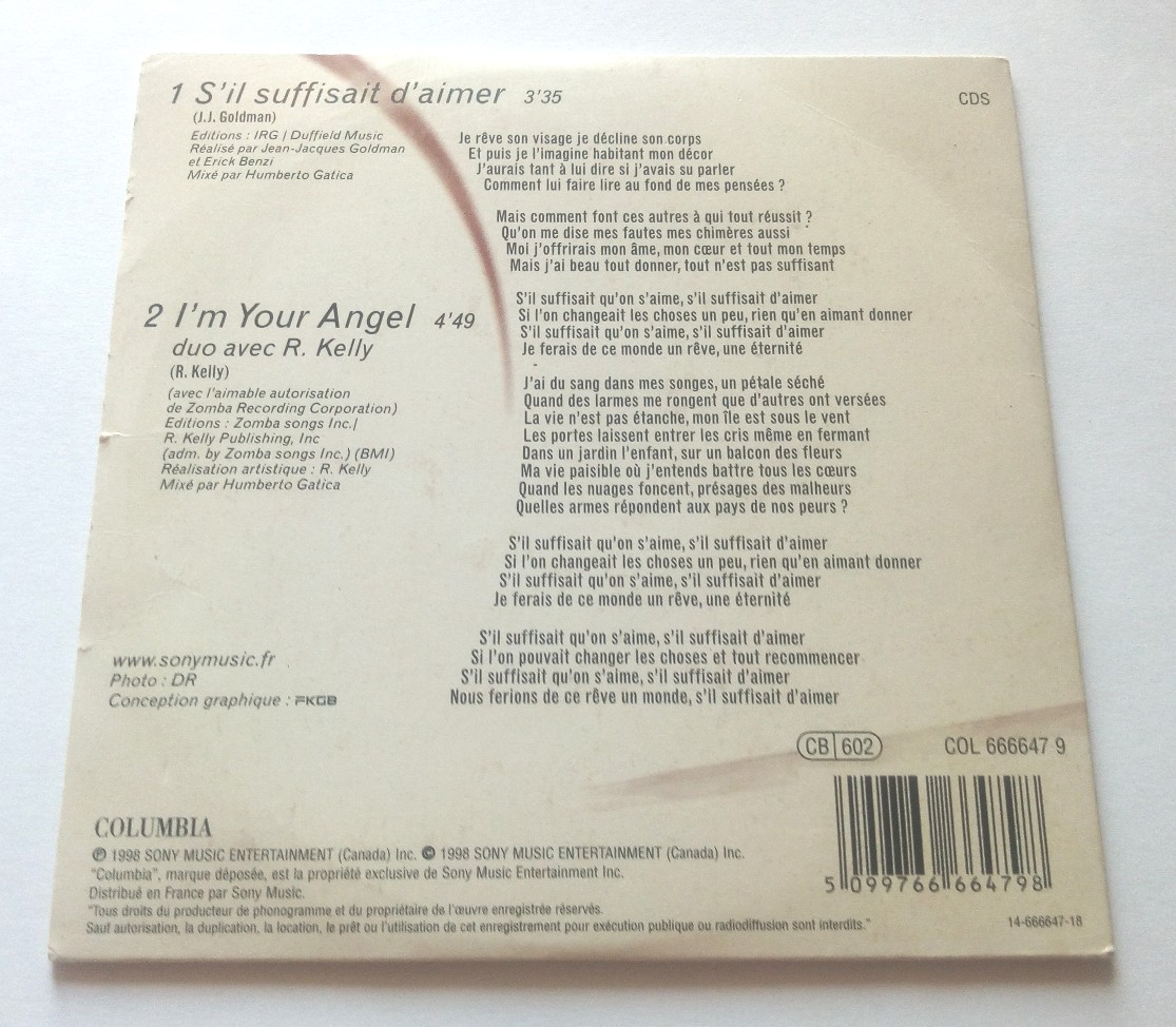 Céline Dion – S’Il Suffisait D’Aimer / I’m Your Angel – CD Single