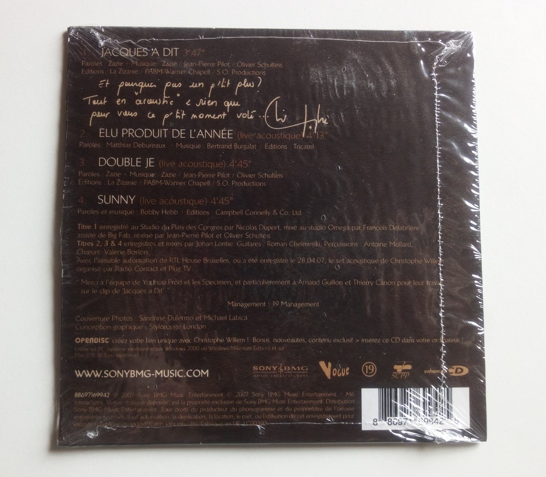 Christophe Willem – Jacques A Dit – CD Single