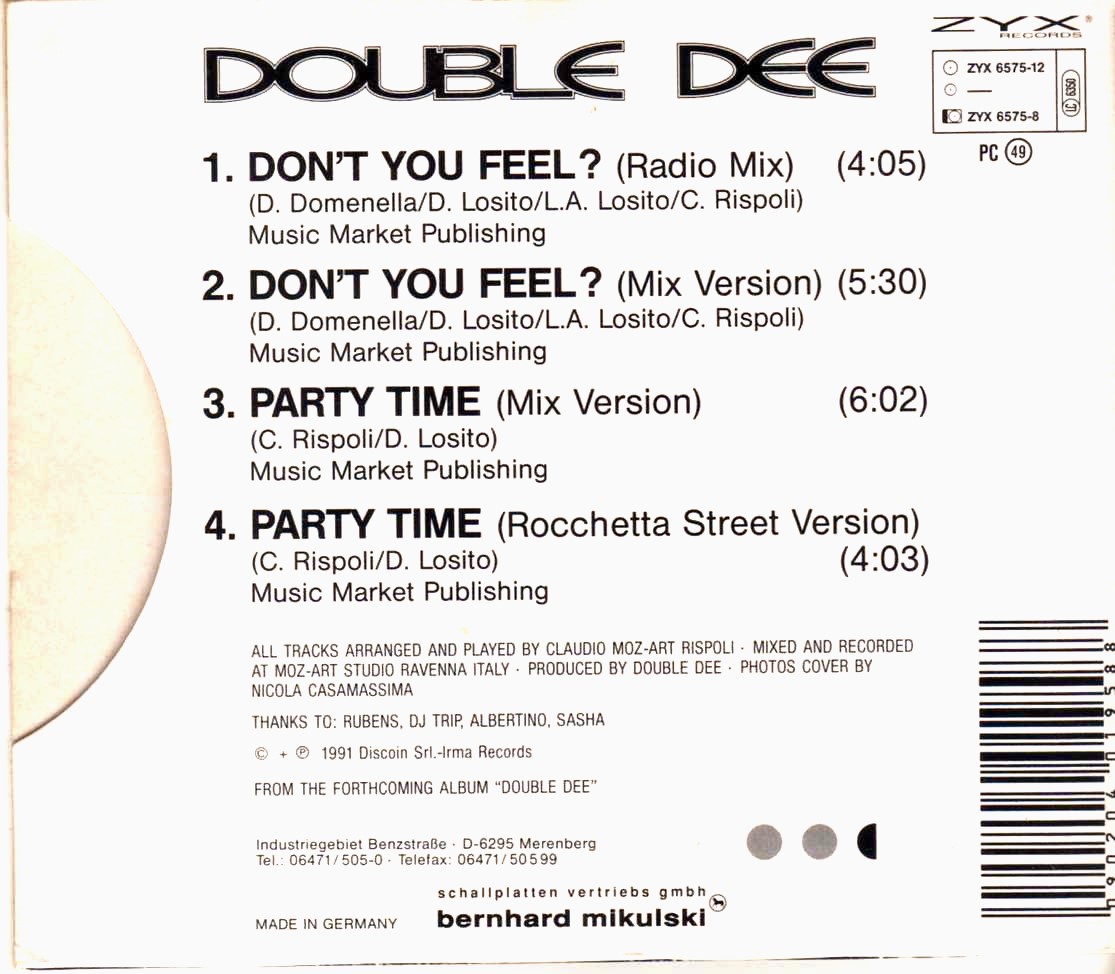 Double Dee – Don’t You Feel? / Party Time – CD Maxi