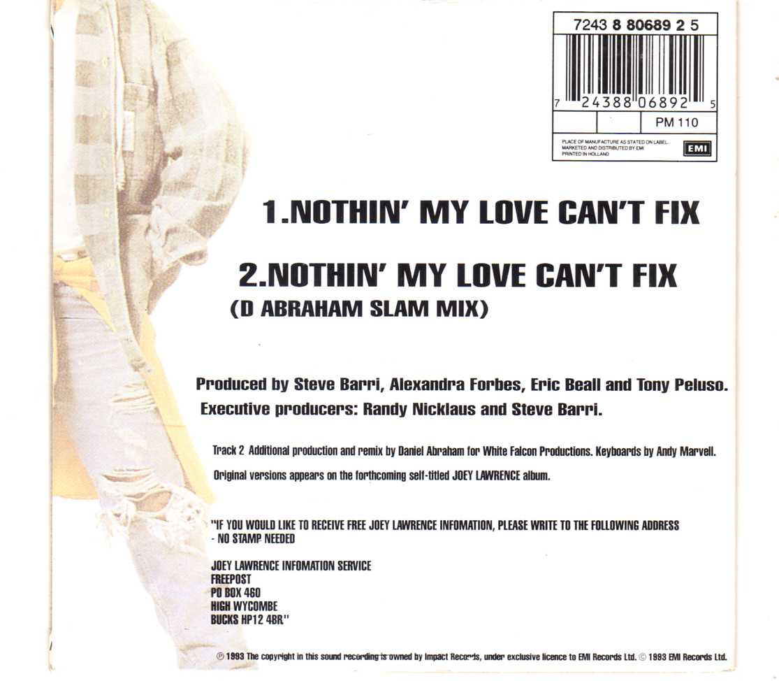 Joey Lawrence – Nothin’ My Love Can’t Fix – CDS