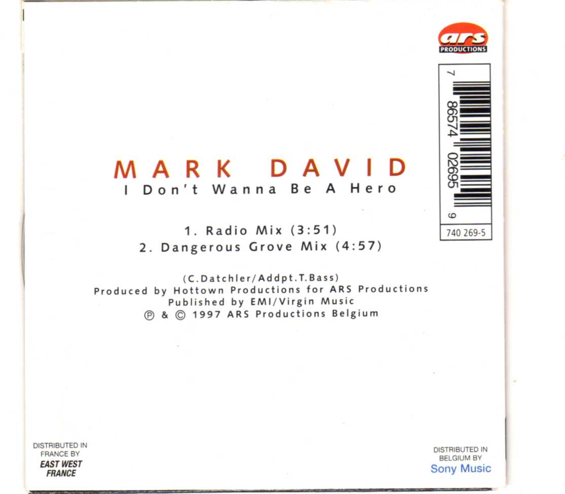 Mark David – I Don’t Wanna Be A Hero – CD Single