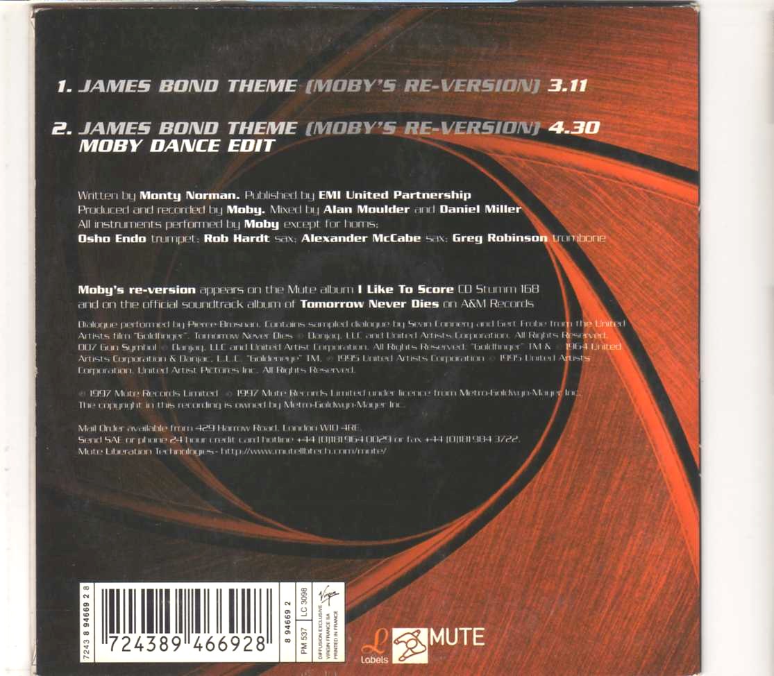 2. James Bond Theme (Moby’s Re-Version) (Moby Dance Edit) (4:28)