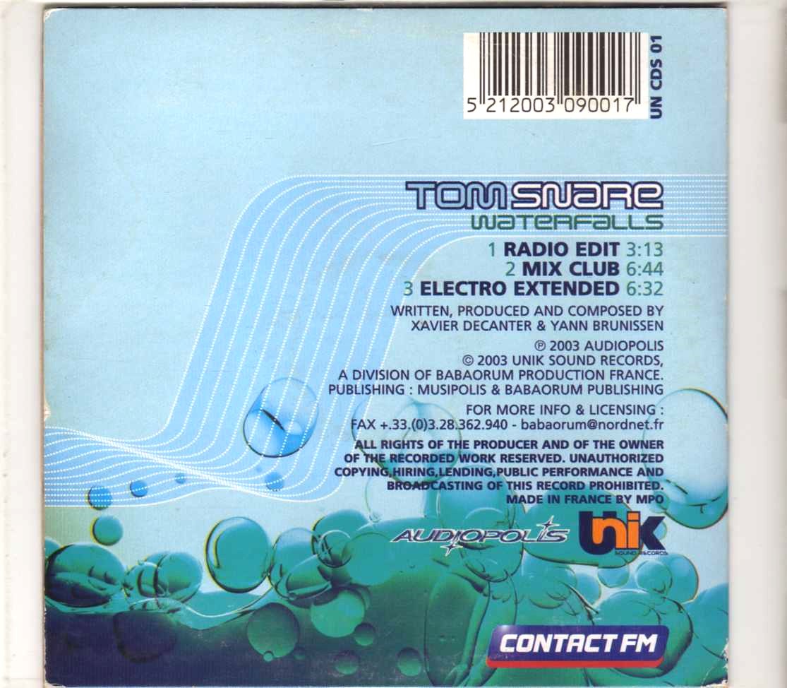 Tom Snare – Waterfalls – CD Single